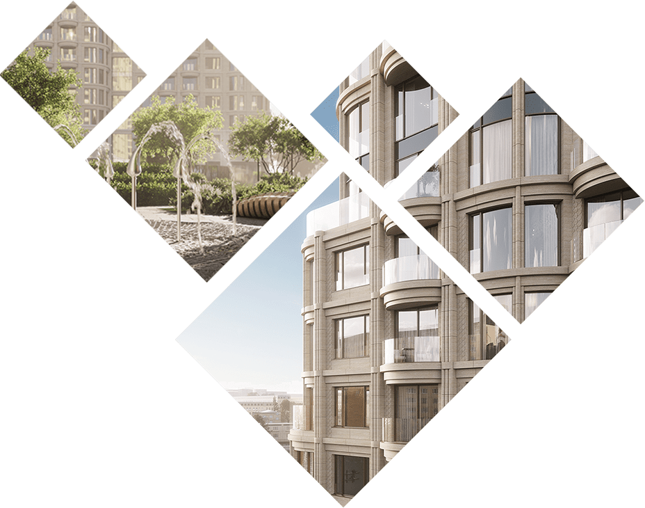 Его современная классическая архитектура органично вписывается в историческую застройку района, по-новому интерпретируя образ белокаменной Москвы. Три изящные башни с большим внутренним двором, обрамленным величественными арками, станут новой архитектурной доминантой района и будут видны даже с Красной площади.